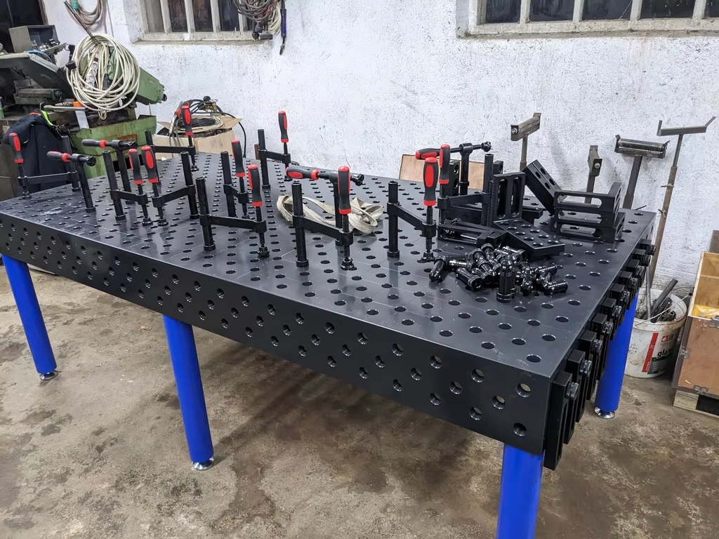 Stabilitas Unggul: Meja piring baja sing kandel kanthi lapisan nitriding kanggo nyegah slag las bisa nanggung beban 500-1000 kg, njamin ora goyang utawa owah-owahan sajrone operasi las lan kanthi efektif ningkatake presisi las.