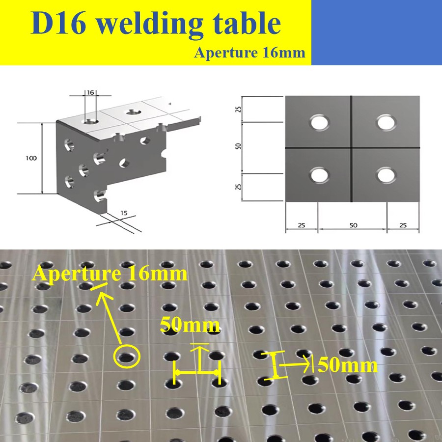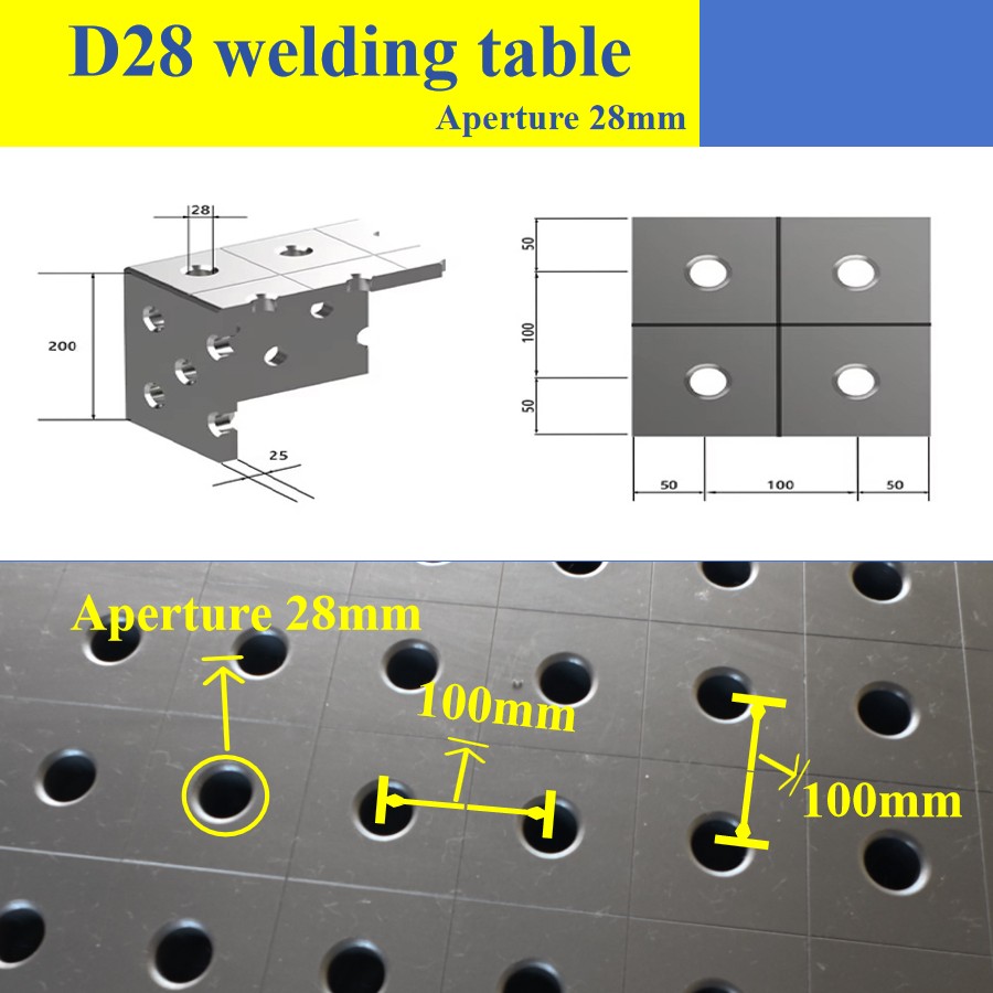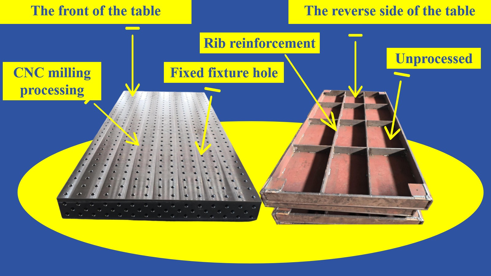 Adaptasi multi-fungsi: Meja duwe bolongan posisi sing wis dibor lan posisi dipasang kanggo ndandani cepet saka macem-macem peralatan perkakas, kompatibel karo macem-macem proses kayata welding busur manual, welding argon arc, lan welding gas shielded.